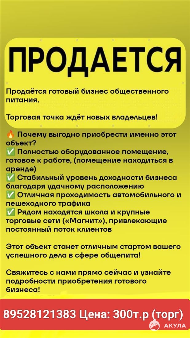 Продажа помещения под общепит