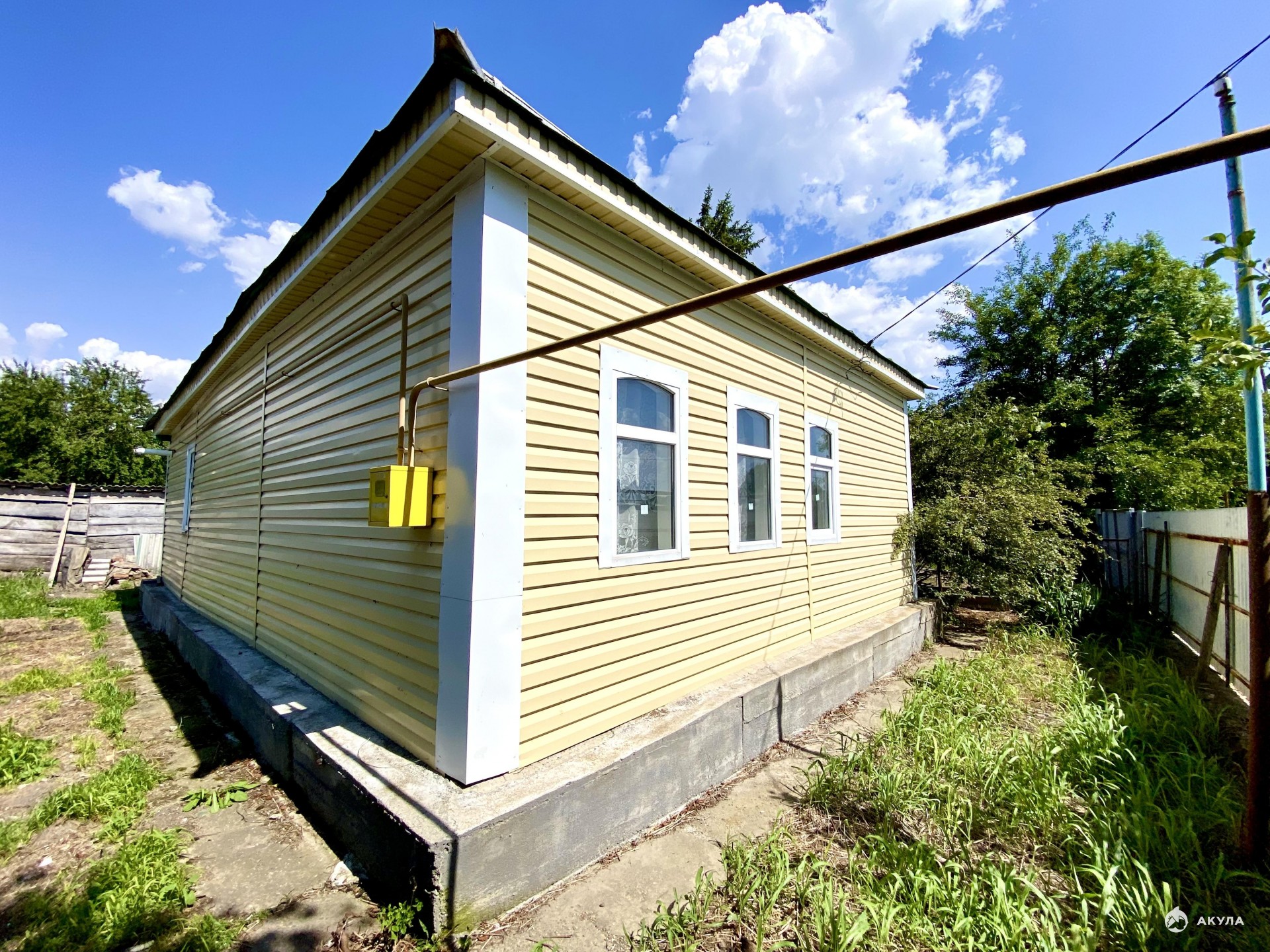 Общая площадь: 60кв.м., участок: 10 соток, фасад: 15 метров. Подключены: газ, свет, вода, канализация. Оставляем всю мебель В доме три комнаты, зал, коридор, ванная комната, кухня. Ремонт свежий, новые окна. Также на участке плодовые деревья и собственный